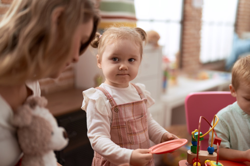 Children between 2 ½ and 4 years old can all be at very different levels of communicating. Your child might take you to what they want, they may point or gesture, they may use single words that may be clear or unclear or they may be using short sentences. Every child is unique and different and will develop communication skills at their own pace.