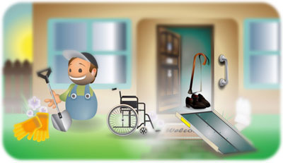 There are many products that can make your front door more accessible as well as helping you to feel safe; for example, access signs, symbols and surfaces, steps and rails, ramps, slip-resistant flooring, emergency evacuation equipment.